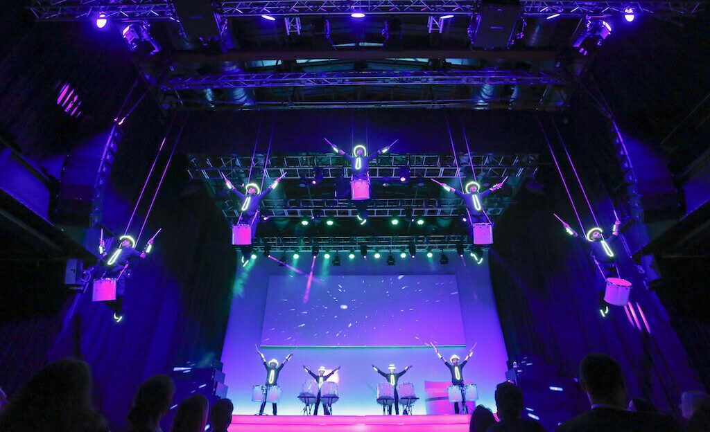 Für einen deutschen Finanzdienstleister waren wir 2014 als Generalunternehmer für Ton-, Licht- und Videotechnik im Kölner Palladium zusammen mit unseren Gewerkepartnern verantwortlich für die Umsetzung einer Mitarbeiter Awardverleihung. Highlights der Veranstaltung waren unter anderem die „Flying Drummers“ und der „Dundu“. Neben der aufwendigen LED- und Projektionstechnik kamen rund 48 Sendestrecken zum Einsatz.