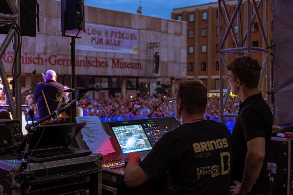 Am 18. und 19.8.2023 durften wir zusammen mit unseren Kollegen Michael Häck ( Foh ) und Frank Schmitz ( TSL Production ) die Brings mit dem Beethoven Orchester Bonn unter der Leitung von Dirk Kaftan vor dem Kölner Dom unsere Expertise beweisen. Unsere Aufgabe war die Mikrofonie des Orchesters, das Orchestermonitoring, sowie die Mischpulte fürs Orchester. Wir konnten hier auf einen große Erfahrungsschatz zurückgreifen, ohne den diese Produktion kaum in dieser Qualität möglich gewesen wäre.